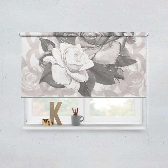 Retro Black White Flowers Printed Roller Blind Monochrome Floral Blind Art Roller Shade For Living Room Bedroom Kitchen Rooms