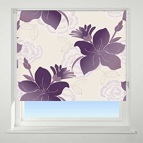 Universal Lily Patterned Thermal Blackout Roller Blind Purple W180cm