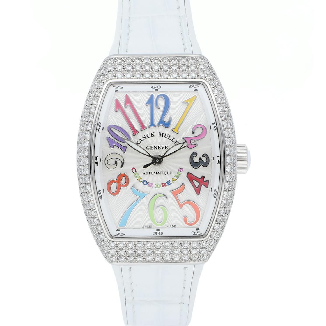 Franck muller vanguard lady. The distinct colored numerals adorning the sun stamped dial perfectly complement the sporty and bold design of the case. Vanguard ladies crazy hours. The vanguard lady moonphase is a new feminine interpretation featuring both dynamic and graceful characteristics.