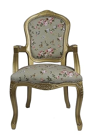Derrys Louis Antique Style French Armchair With Floral Wood Gold Green